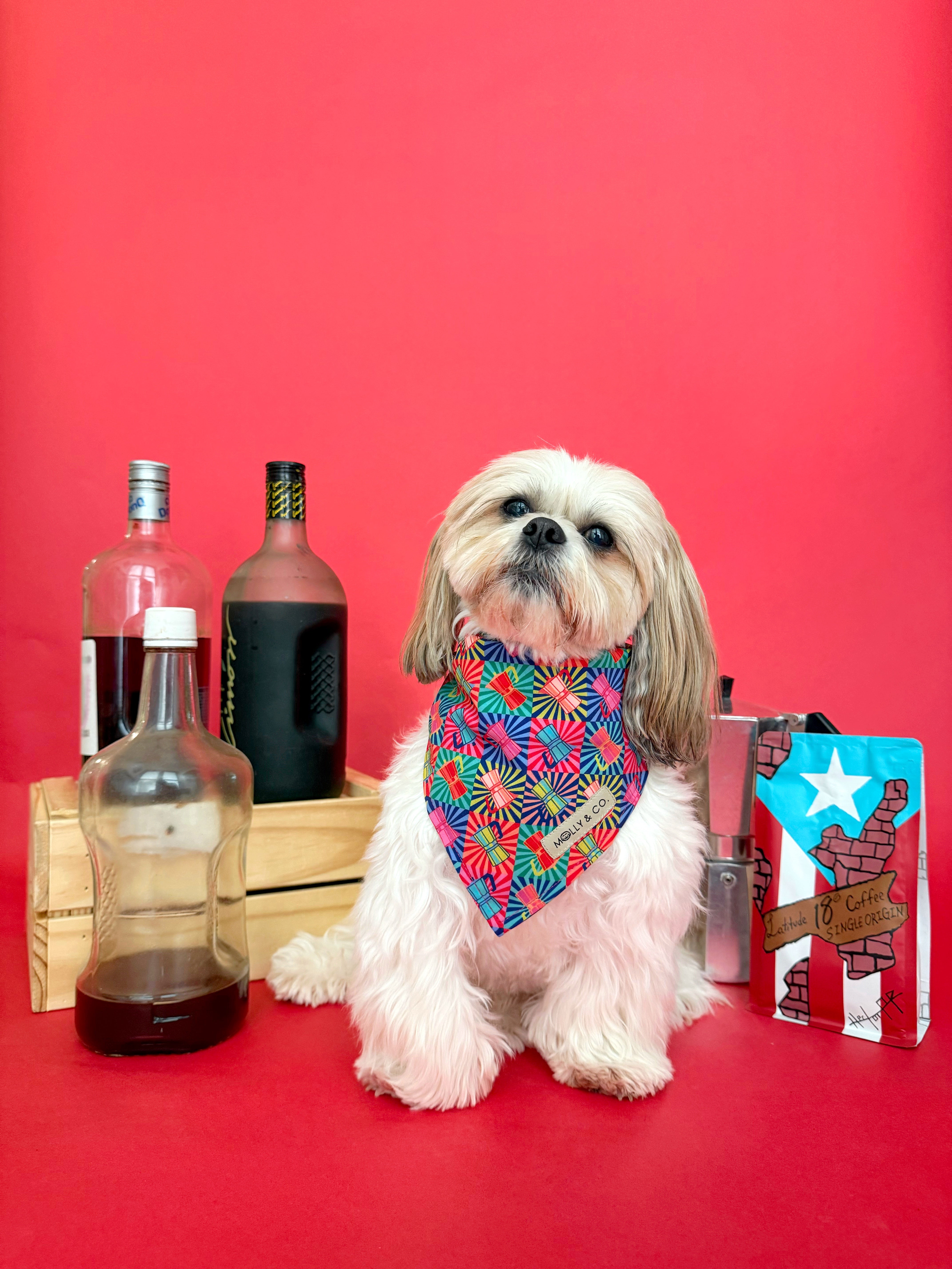 Bold like café, sweet like coco, and with just the right kick - the Café con Pitorro Reversible Bandana is a tribute to island traditions, familiar lyrics, and flavors that linger long after the party ends. Inspired by everything from holiday parranda vibes to late-night chinchorreos, this one’s for the pups with puro sabor.