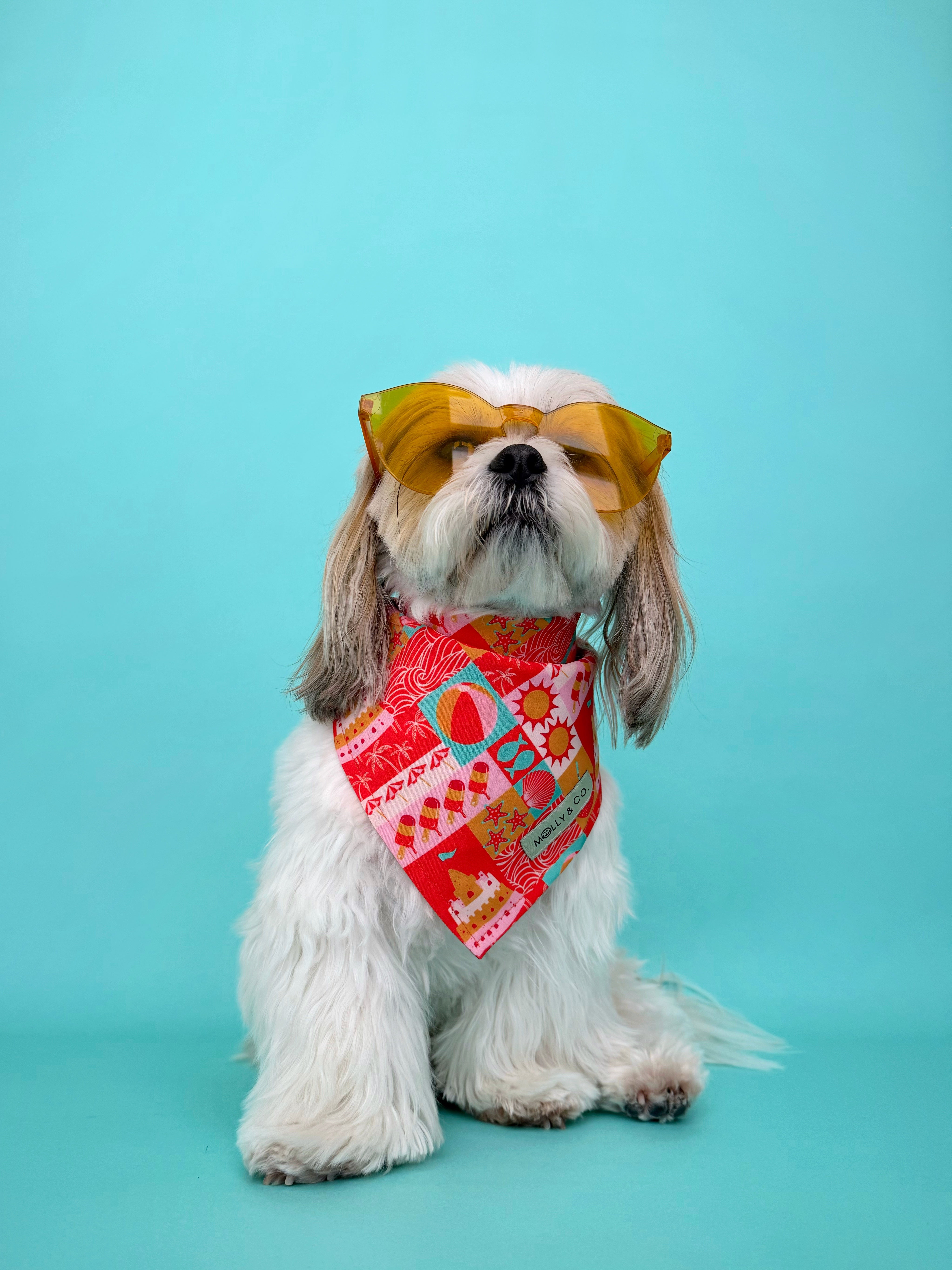 Sun’s out, tongues out. The Sandbar Bandana brings vacation vibes to your pup’s daily stroll - no boarding pass required. With playful beachside flair and lightweight, breathable fabric, it’s perfect for everything from backyard tanning sessions to seaside sniffing. Plus, it’s easy to tie, machine washable, and guaranteed to turn heads (and tails).