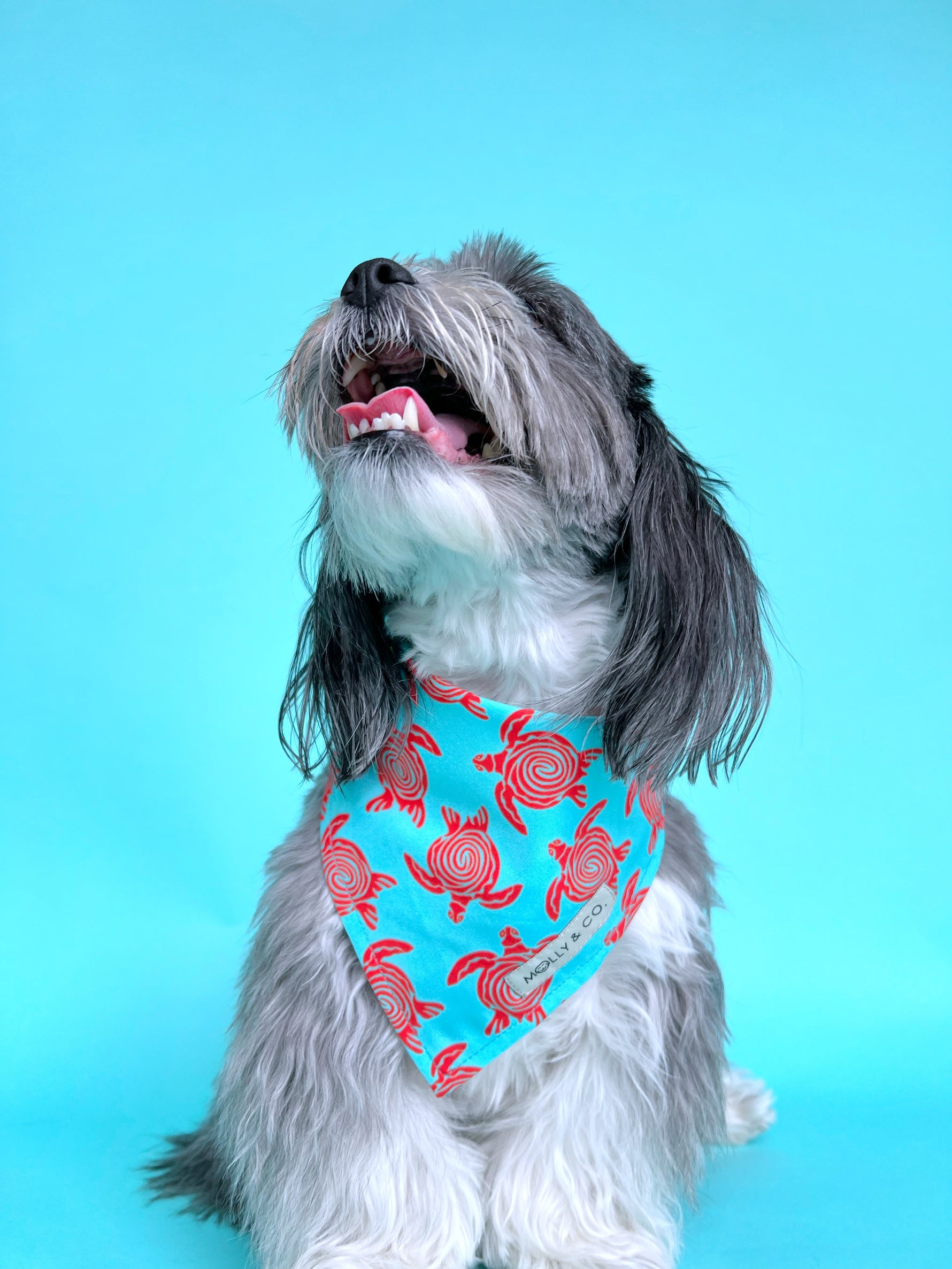 Add an extra dose of style and cuteness to your dog with our beautiful Turtle Trails bandana. This bandana features two Molly & Co. hand drawn original designs.