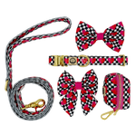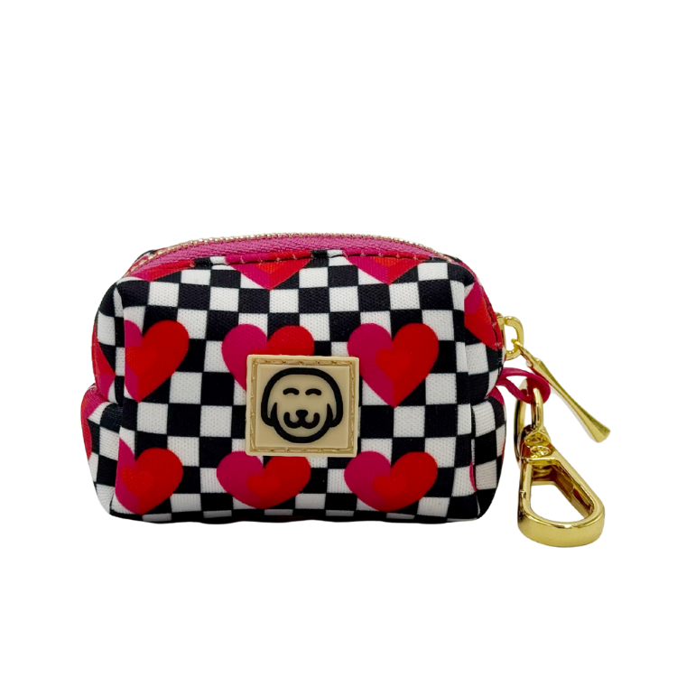 The Lovebug Deluxe Bundle is the definition of romance-core for your pup. With its black and white checkered pattern dotted with pink hearts and our signature gold hardware, every piece in this set feels like a curated wardrobe for the most adored dog you know.