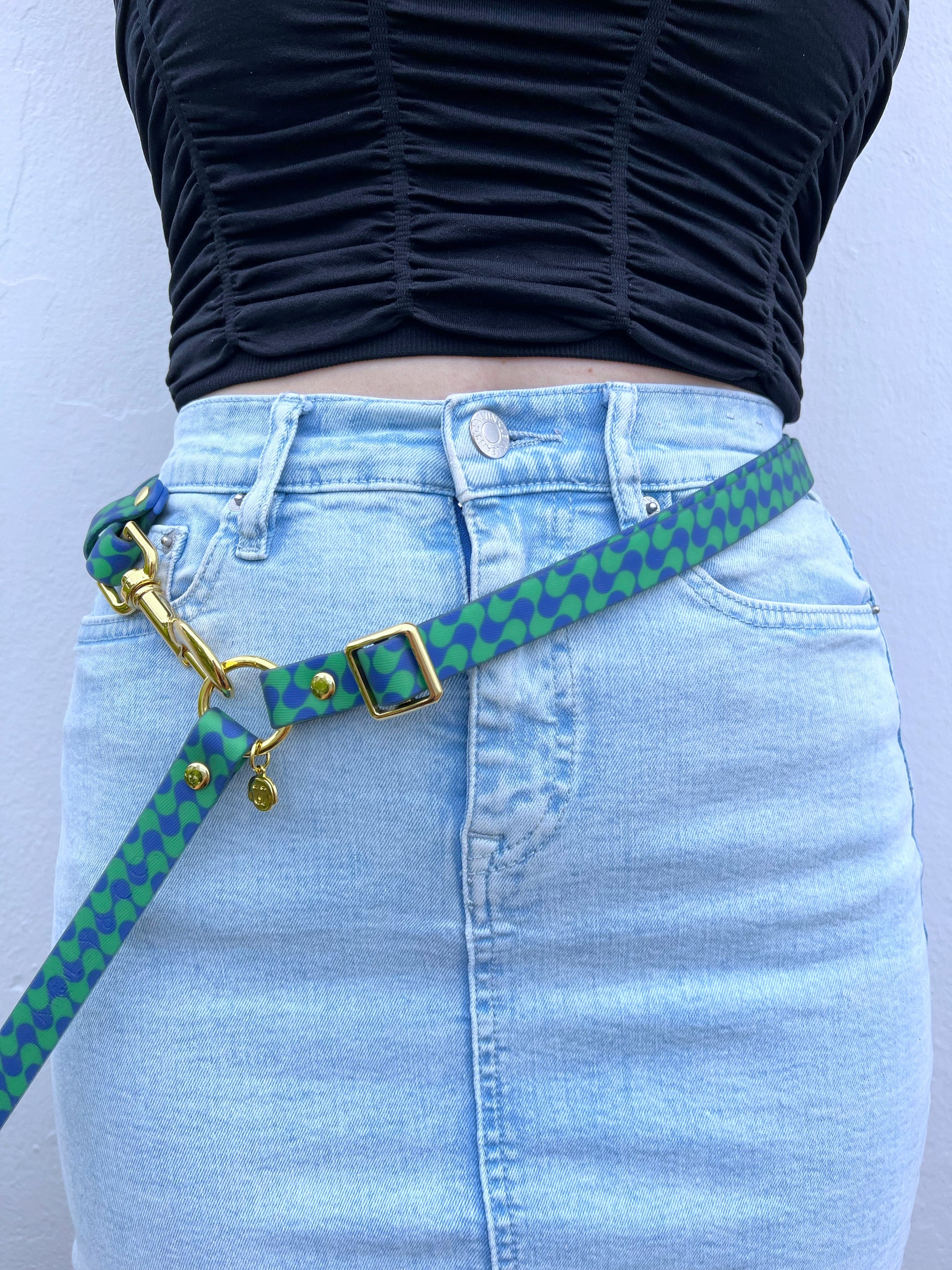 Introducing our Forest Handsfree Splashproof Leash, featuring the iconic swirls of our best-selling Forest Collection! With its vibrant blue and green hues, this leash offers both style and functionality for your outdoor adventures. Enjoy the convenience of hands-free walking with the adjustable design, allowing you to wear it comfortably around your waist or across your body. Explore the great outdoors with your pup in style while still maintaining control and comfort.