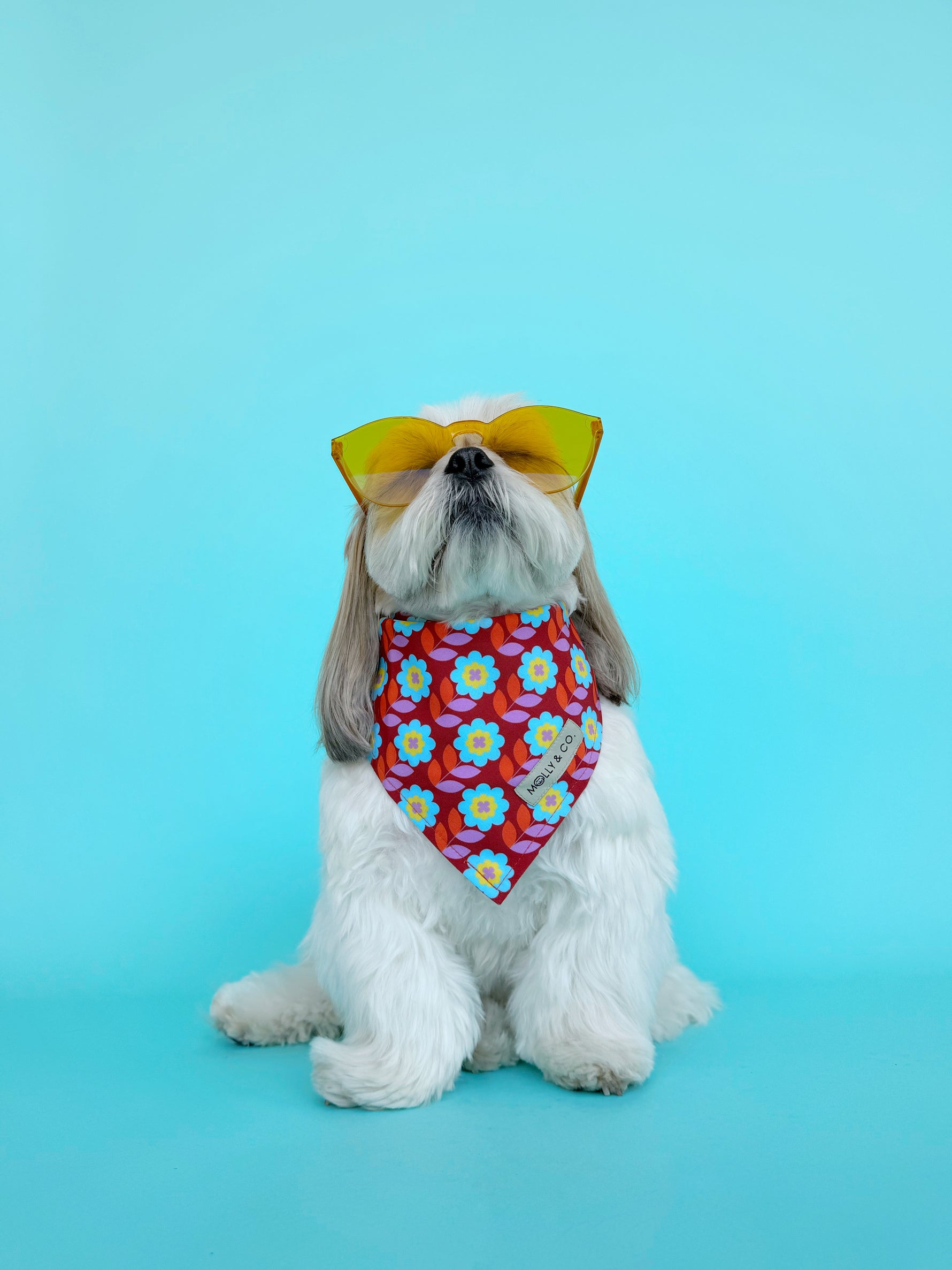 Add a pop of floral charm to your pup’s look with the Poppy Dog Bandana. Made from soft, breathable fabric, it features a vibrant poppy print that’s perfect for any occasion. The easy-to-tie design ensures a comfortable fit, making it a stylish addition to daily walks or family photos.