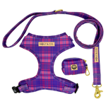 Make every walk a stylish adventure with our Pinkberry Plaid Walking Bundle! This fun and fabulous set, featuring a matching harness, leash, and poop bag holder in a playful pink and purple plaid, ensures that you and your pup are turning heads and wagging tails wherever you go.