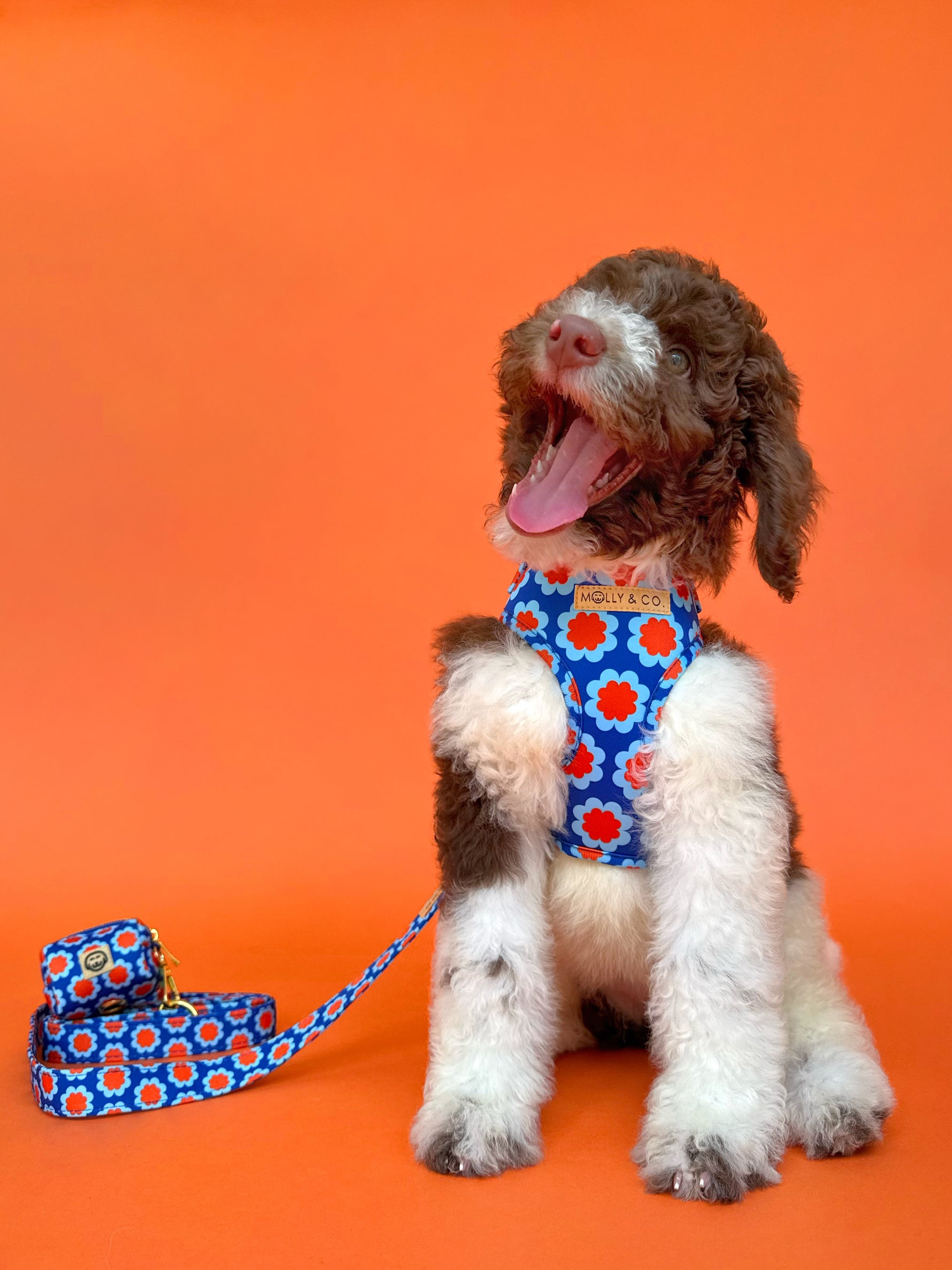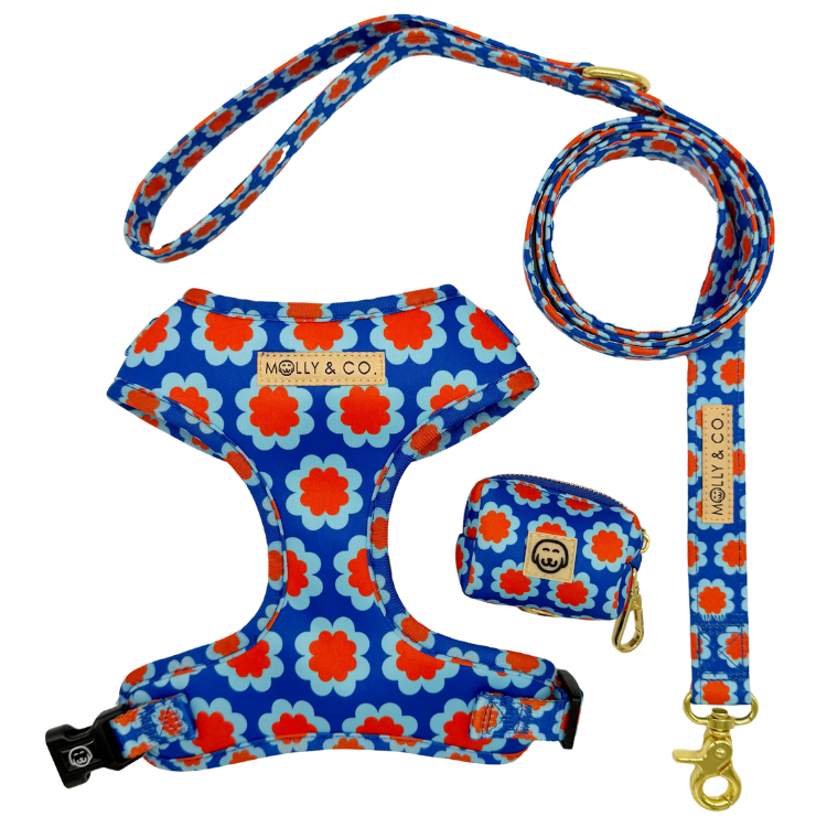 Get your pup ready to stroll in style with our Sorrento Walking Bundle! Featuring vibrant blue and orange geometric florals, this bundle has everything you need for the perfect walk — a matching collar, leash, and poop bag holder designed for pups who love to stand out. Durable, lightweight, and seriously stylish, it’s the ultimate set for everyday adventures.