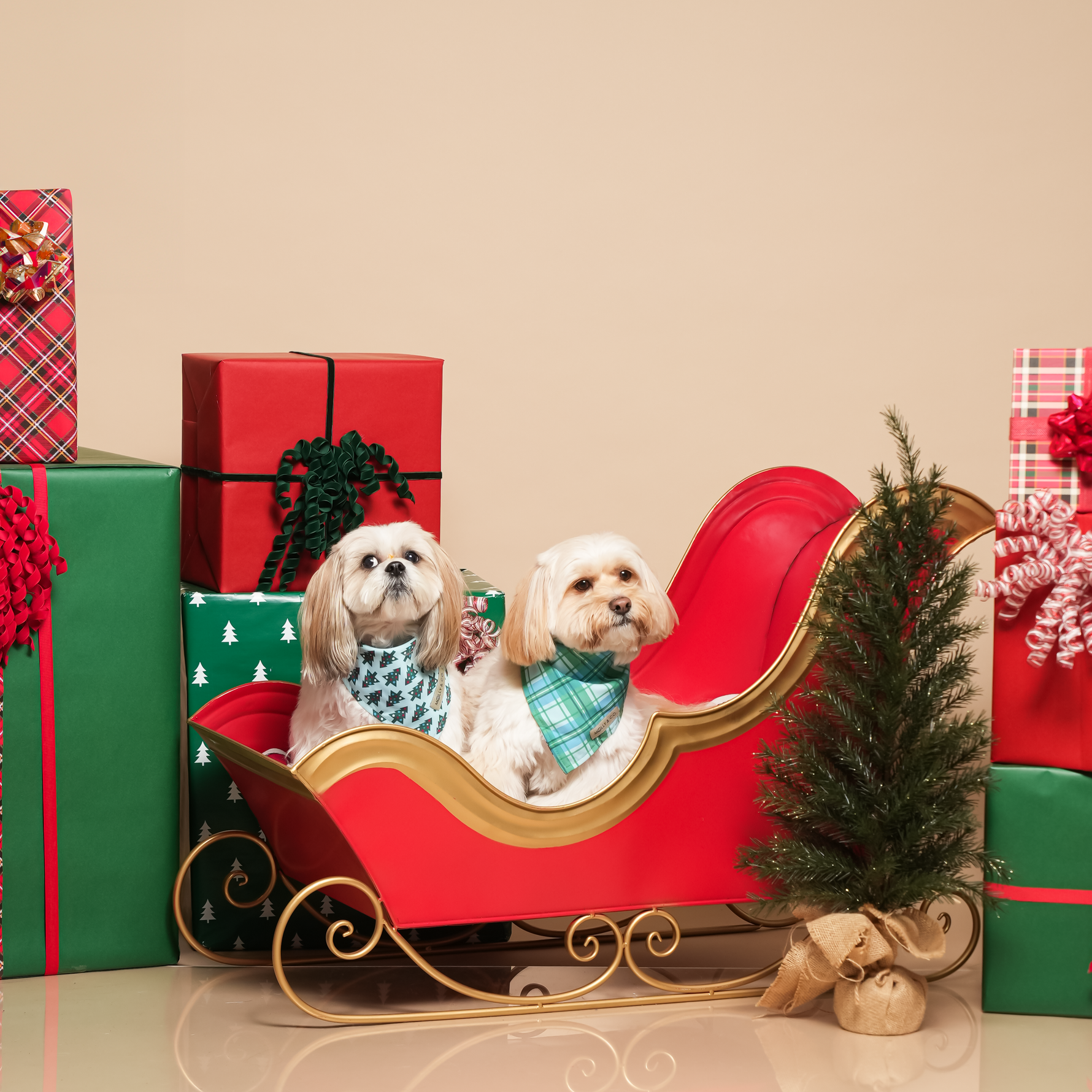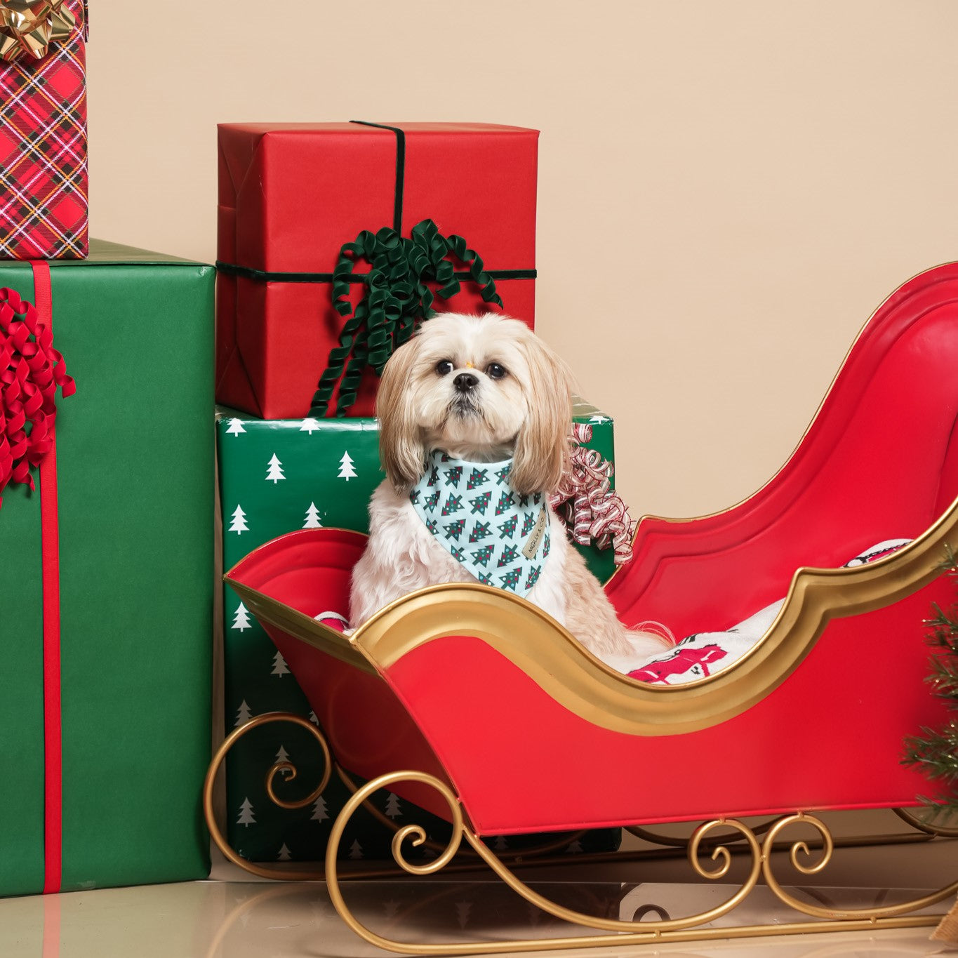 Give your pup a festive, stylish twist with our Northern Lights + Deck the Halls Reversible Bandana! Featuring two cozy winter-themed designs, this bandana brings out the best of the season in light green plaid on one side and cheerful holiday-inspired colors on the other. Perfect for pets who love to celebrate all winter long!