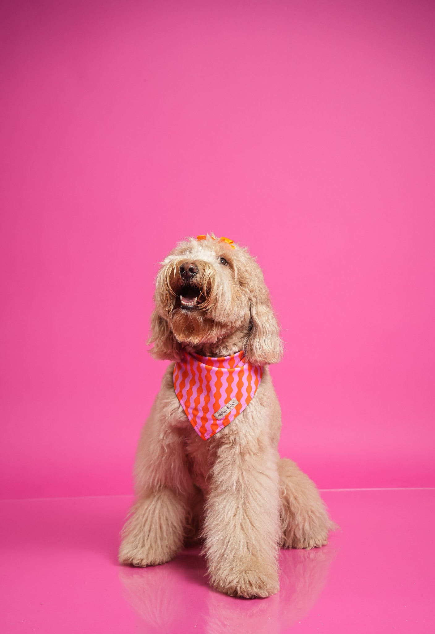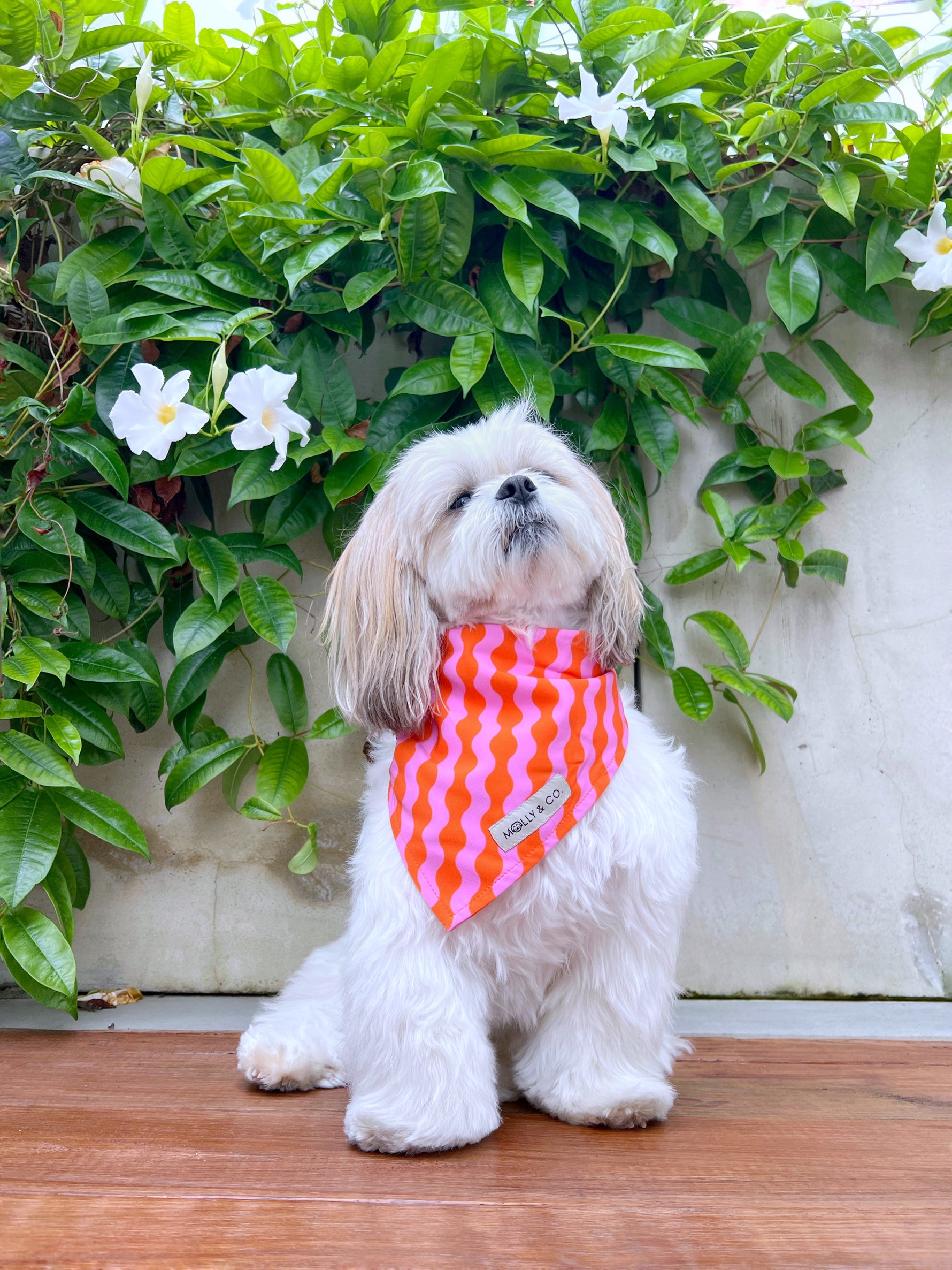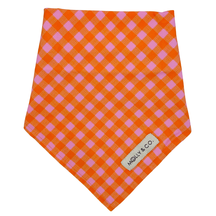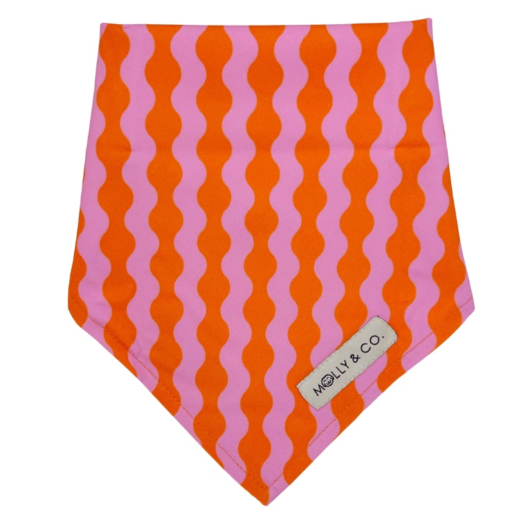 Your pup will look super sassy and cute with our orange and pink Mango reversible bandana. This bandana features a Molly & Co. hand drawn original design.
