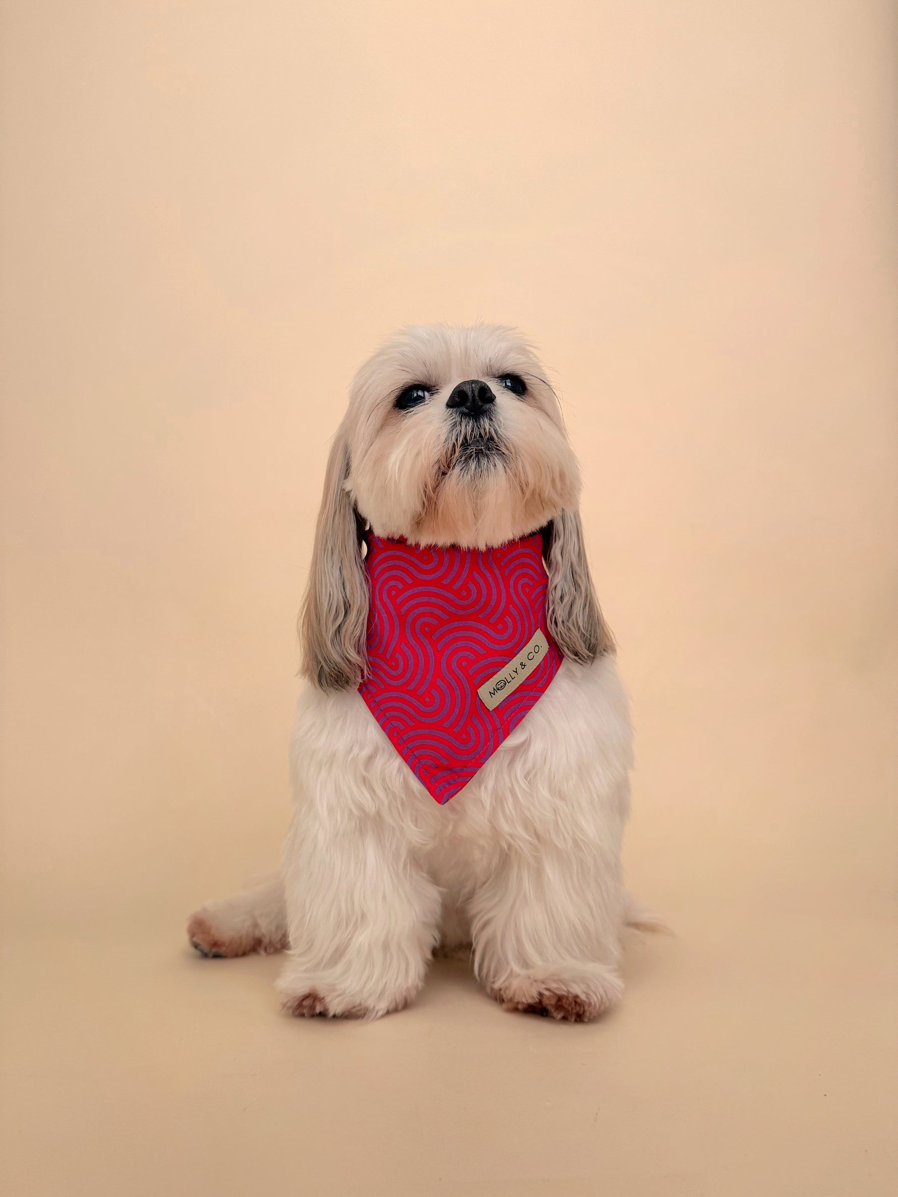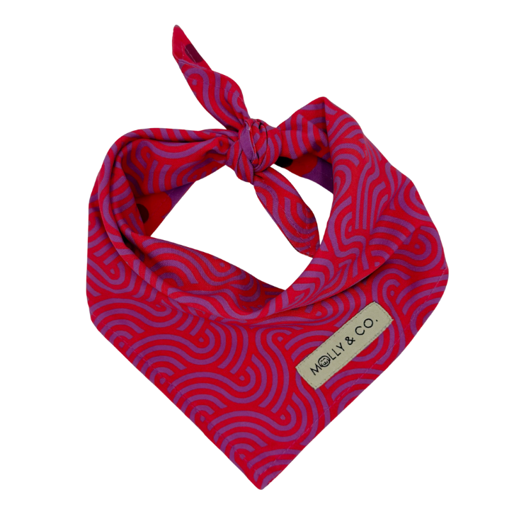 Two moods, one flawless accessory. The Mon Chéri Reversible Bandana features a bold floral on one side and a clean, modern geometric pattern on the other - for pups who like their looks as layered as their personalities. Just tie and go; the charm takes care of itself.
