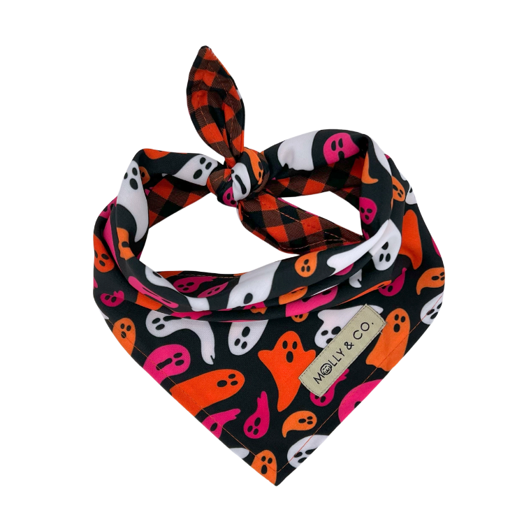 Add an extra dose of style and cuteness to your dog with this fun Halloween bandana. This bandana features a Molly & Co. hand drawn original design.
