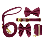 Our Merlot Deluxe Bundle is the easiest way to give your pup a fully styled, head-turning look in seconds. This rich burgundy velvet feels timeless, elevated, and undeniably luxe, with gold accents that make every detail pop. Designed for comfort and made to be seen, it’s the kind of set that turns everyday moments into something a little more special.
