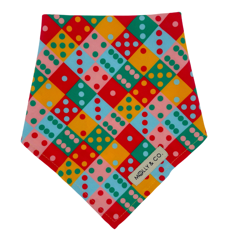 - Triangle shaped bandana that’s easy to tie-on (needs no folding)!
