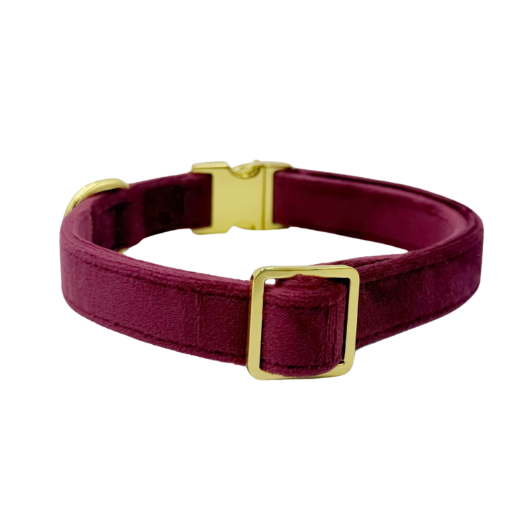 Introducing our Merlot Velvet Dog Collar! A velvet burgundy inspired by candlelit dinners, velvet curtains, and that “wow” moment when everything looks expensive. This collar brings runway energy to daily walks, pairing effortlessly with neutrals and making a statement with every step.