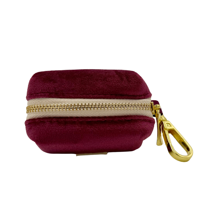 A little detail, a big difference. Our Merlot Velvet Poop Bag Holder is the kind of accessory that makes even the “not-so-glam” parts of dog life feel elevated. With its rich burgundy velvet finish and gold hardware, it pairs perfectly with your Merlot set and keeps essentials within reach on every walk.