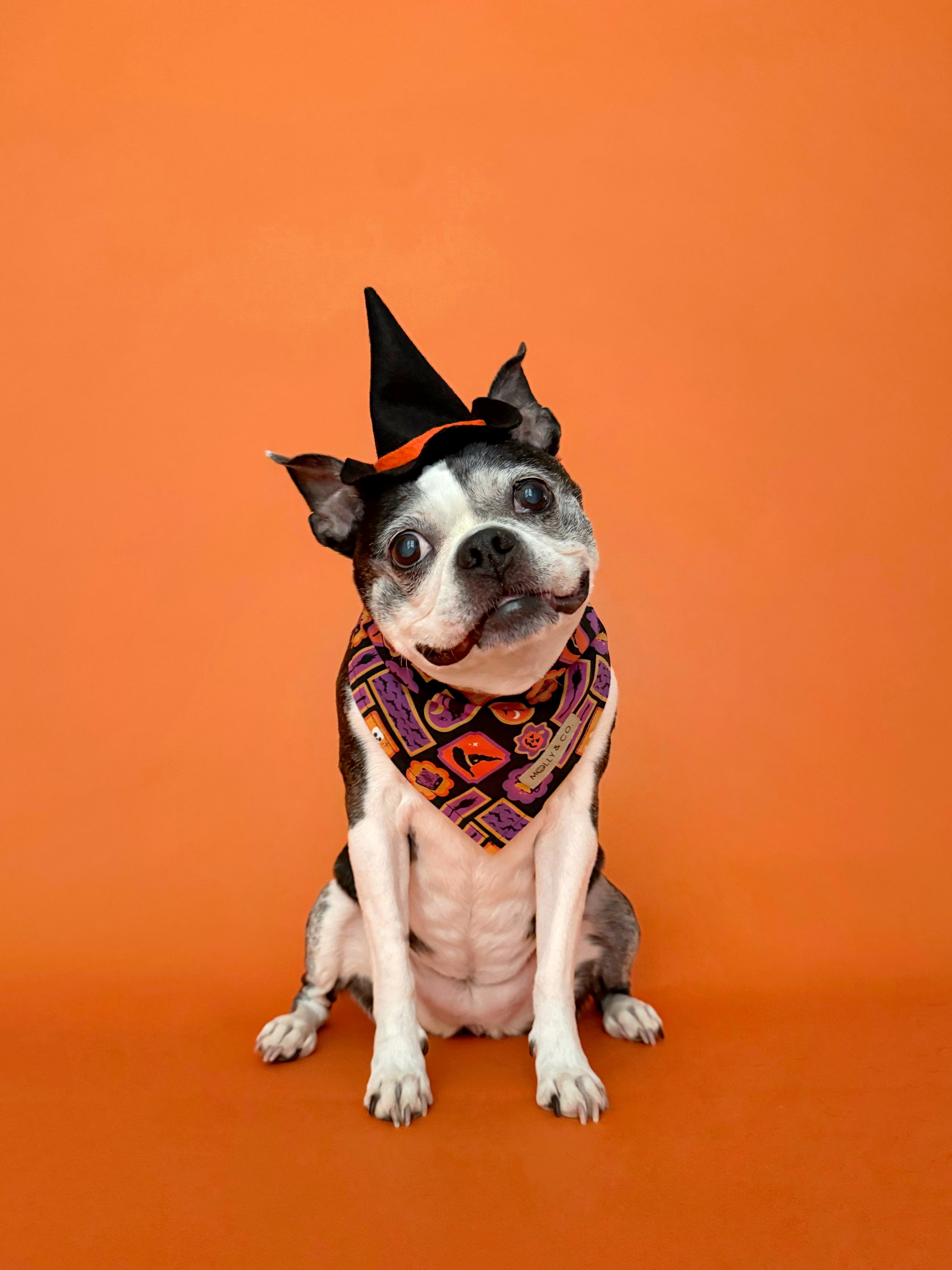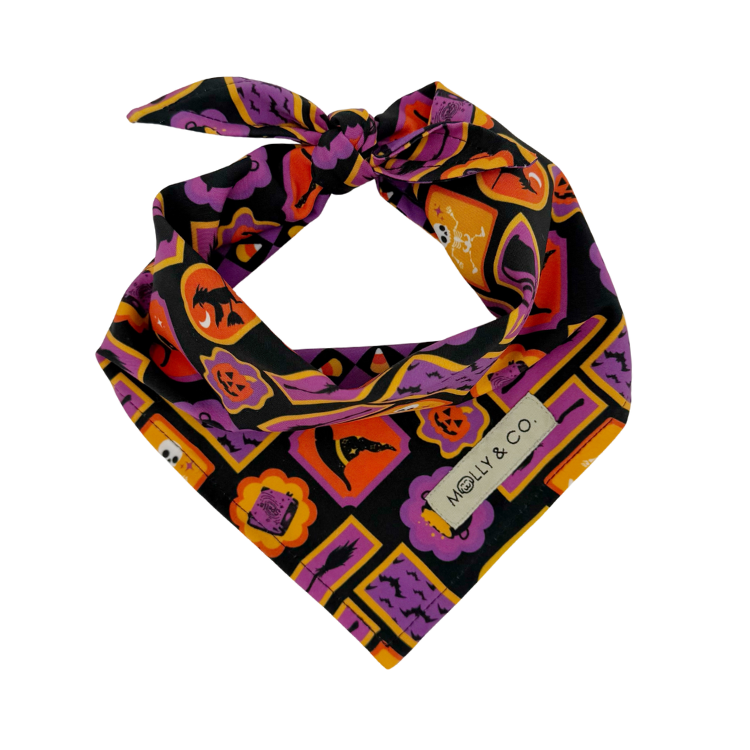 This witchy bandana was conjured up for dogs who don’t just bark: they cast spells. With bold Halloween flair and bewitching style, Stay Wicked is perfect for haunting the block or stealing hearts at the dog park. Soft, breathable, and easy to tie, it’s the ultimate trick (and treat) for your pup’s Halloween look.