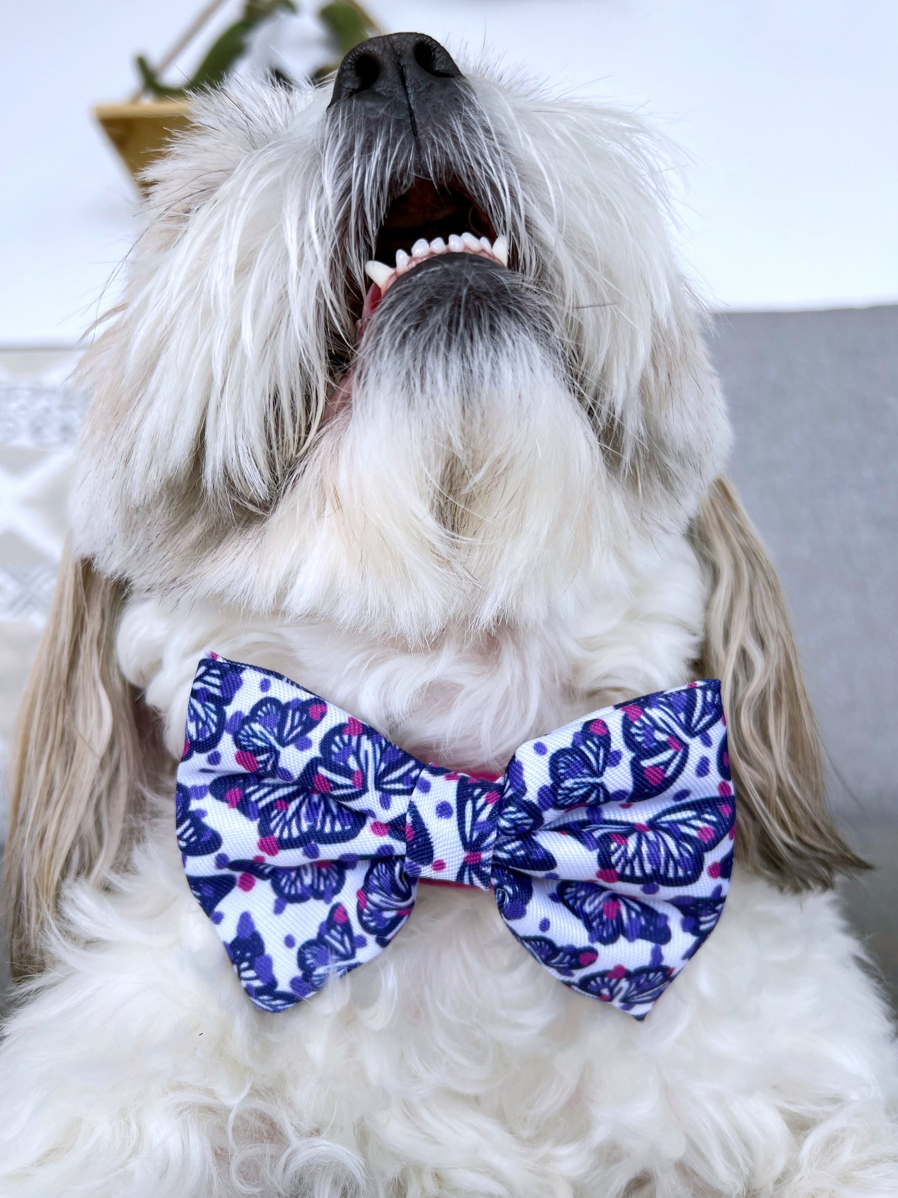 Add an extra dose of stylishness to your dog with this chic bowtie. This bowtie features a Molly & Co. hand drawn original design. If you love butterflies like us, then look no further!