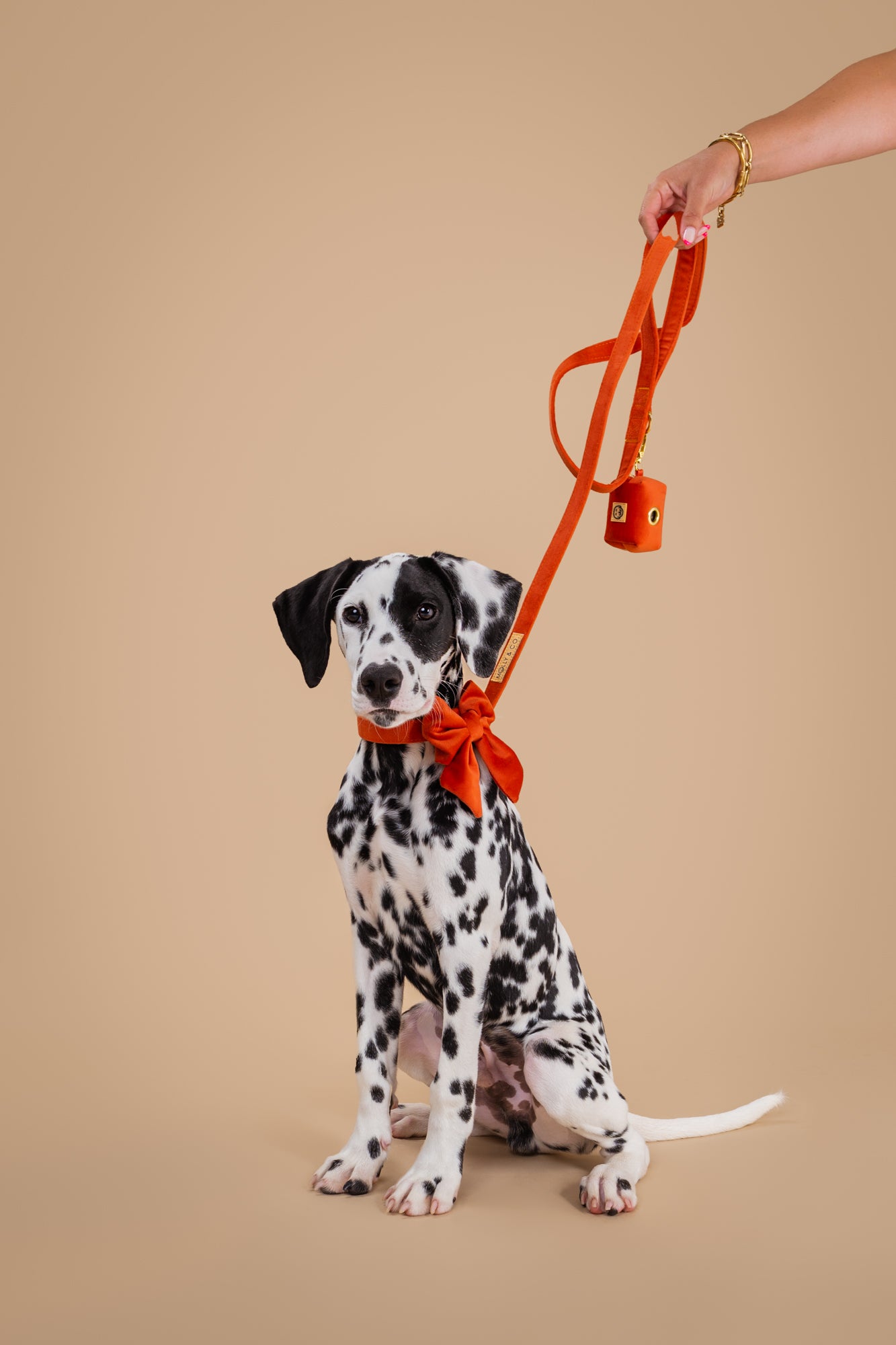 Add an extra dose of luxury to your dog with our Tangerine Velvet sailor bowtie. This bowtie features a Molly & Co. original design that will make your dog look stylish and chic.
