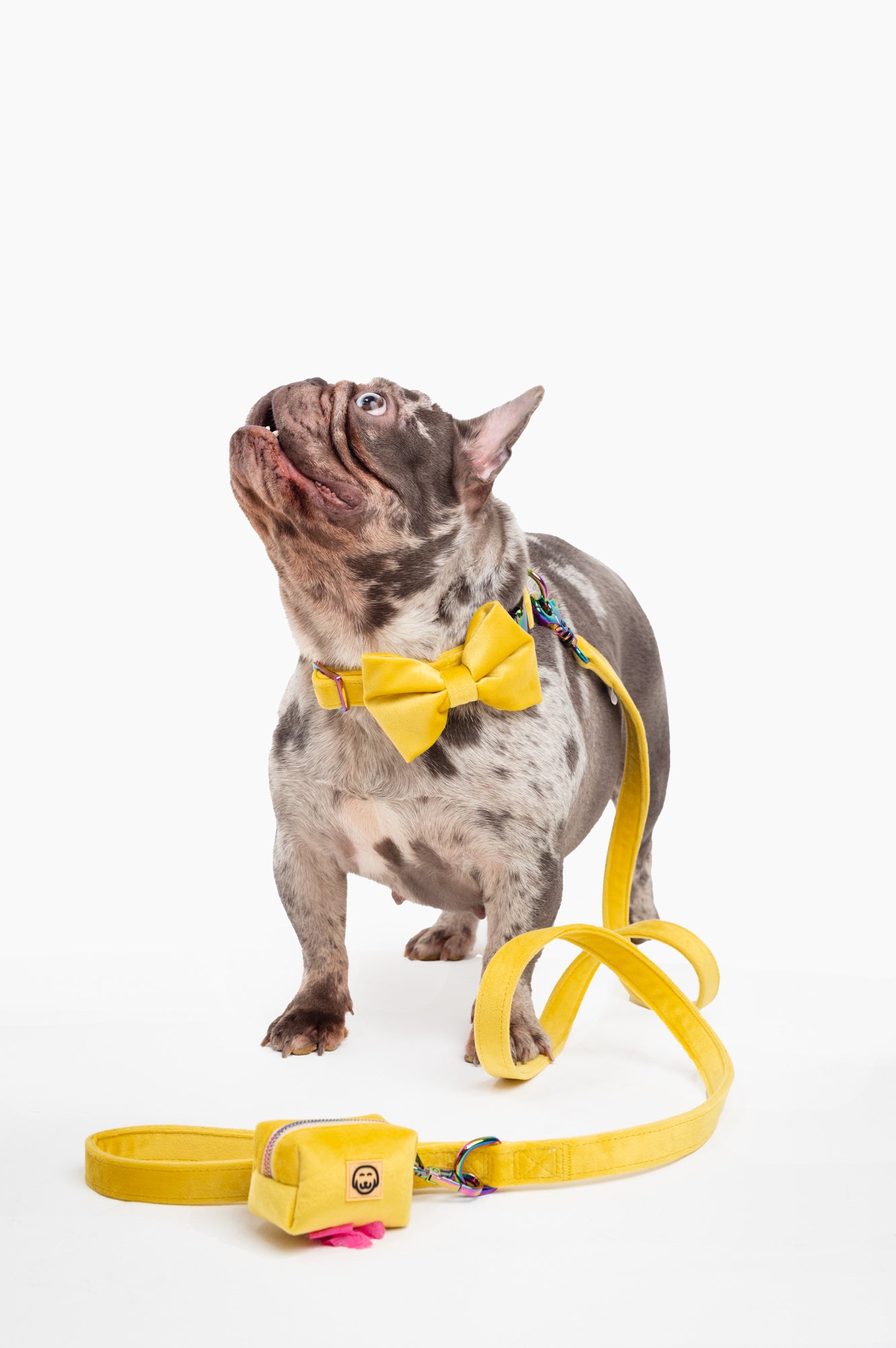 Add an extra dose of luxury to your dog with our Sunshine Velvet bowtie. This bowtie features a Molly & Co. original design that will make your dog look stylish and chic.