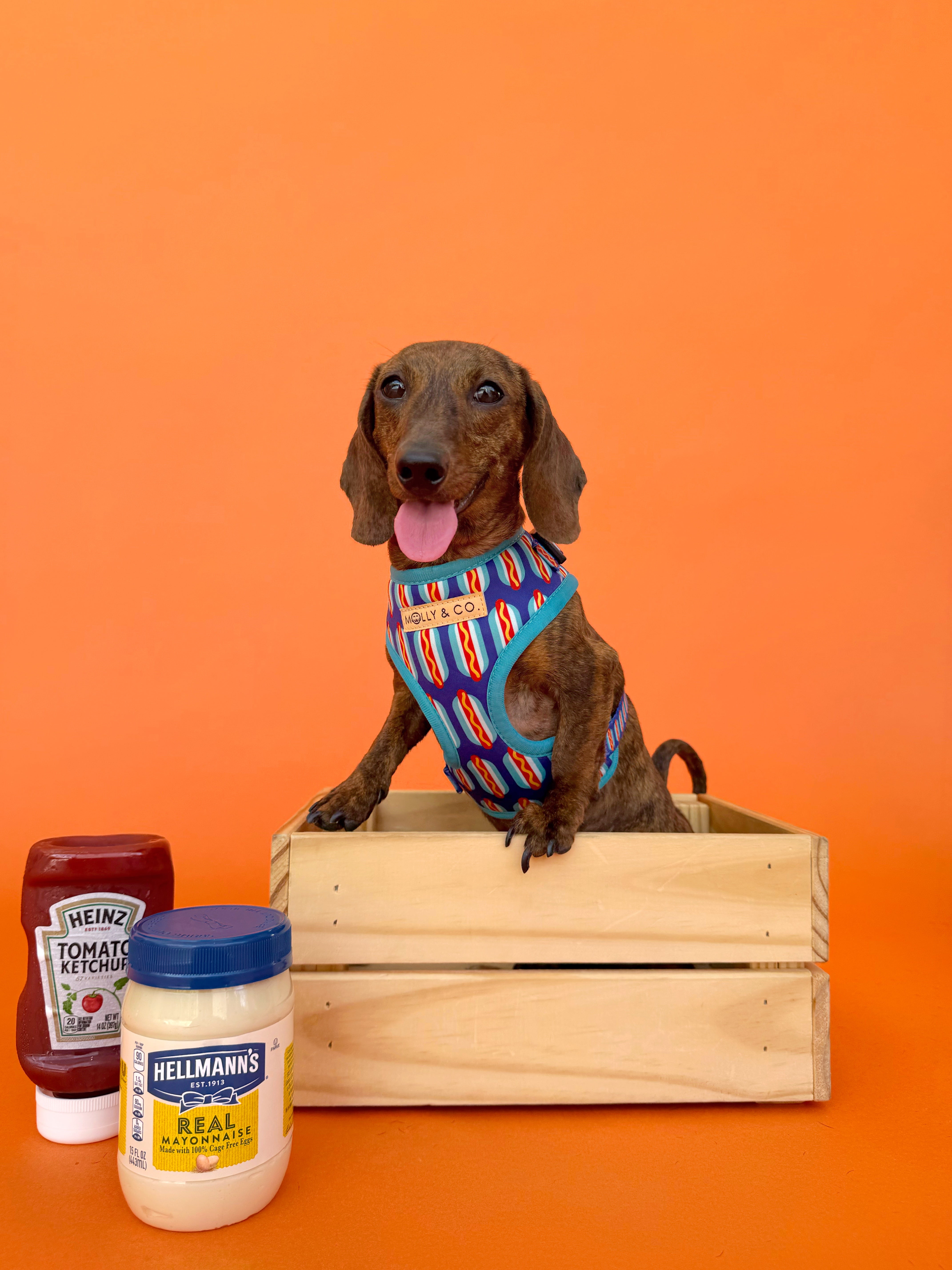 Serve looks and snacks. The Wieners Adjustable Harness brings major cookout energy with a playful design that’s made for sunny days, backyard hangs, and pups who know they’re the main course. Lightweight, comfy, and adjustable for the perfect fit - because your dog deserves to feel (and look) like a whole snack.